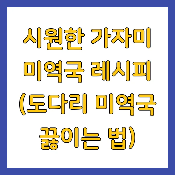 : 미역 불리기 → 가자미 손질 → 육수 만들기 → 미역 볶기 → 가자미 넣고 끓이기 → 간 맞추기 - 단계별 설명과 함께 팁을 제공하여 초보자도 쉽게 따라 할 수 있도록 구성했습니다.